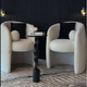 Sillón Chicago: Confort envolvente y textura. Este sillón individual se distingue por su forma semicircular con respaldo bajo y tapizado en tejido boucle o borreguito de color crema. La pieza ideal, vendida por unidad, para crear un rincón de lujo y comodidad.