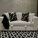 Sofá Cama Milán: Lujo y textura acogedora. Este audaz sofá cama está completamente envuelto en una suave tela de pelo largo o faux fur blanca, con un distintivo patrón de anillos horizontales que le da un volumen único. Un diseño ultra-cómodo y transformable, ideal para un estilo maximalista.